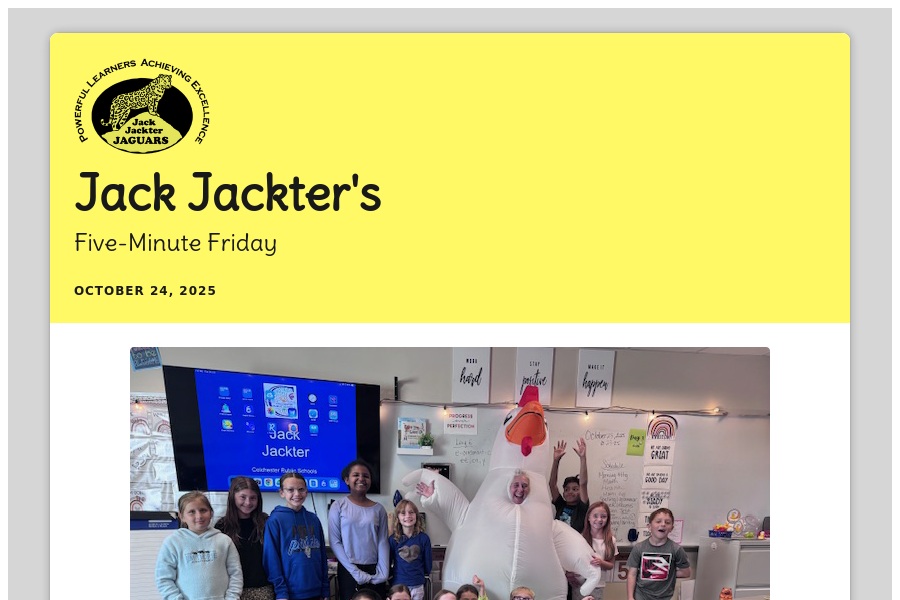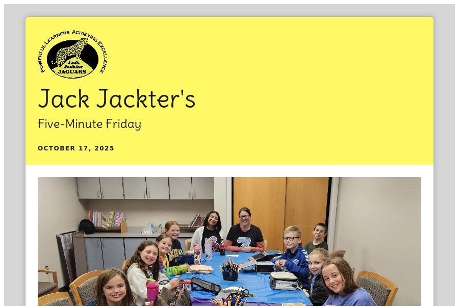 Jack Jackter's Five-Minute Friday October 24, 2025 News from the Office New Parent Pick Up Procedure Veterans. . .