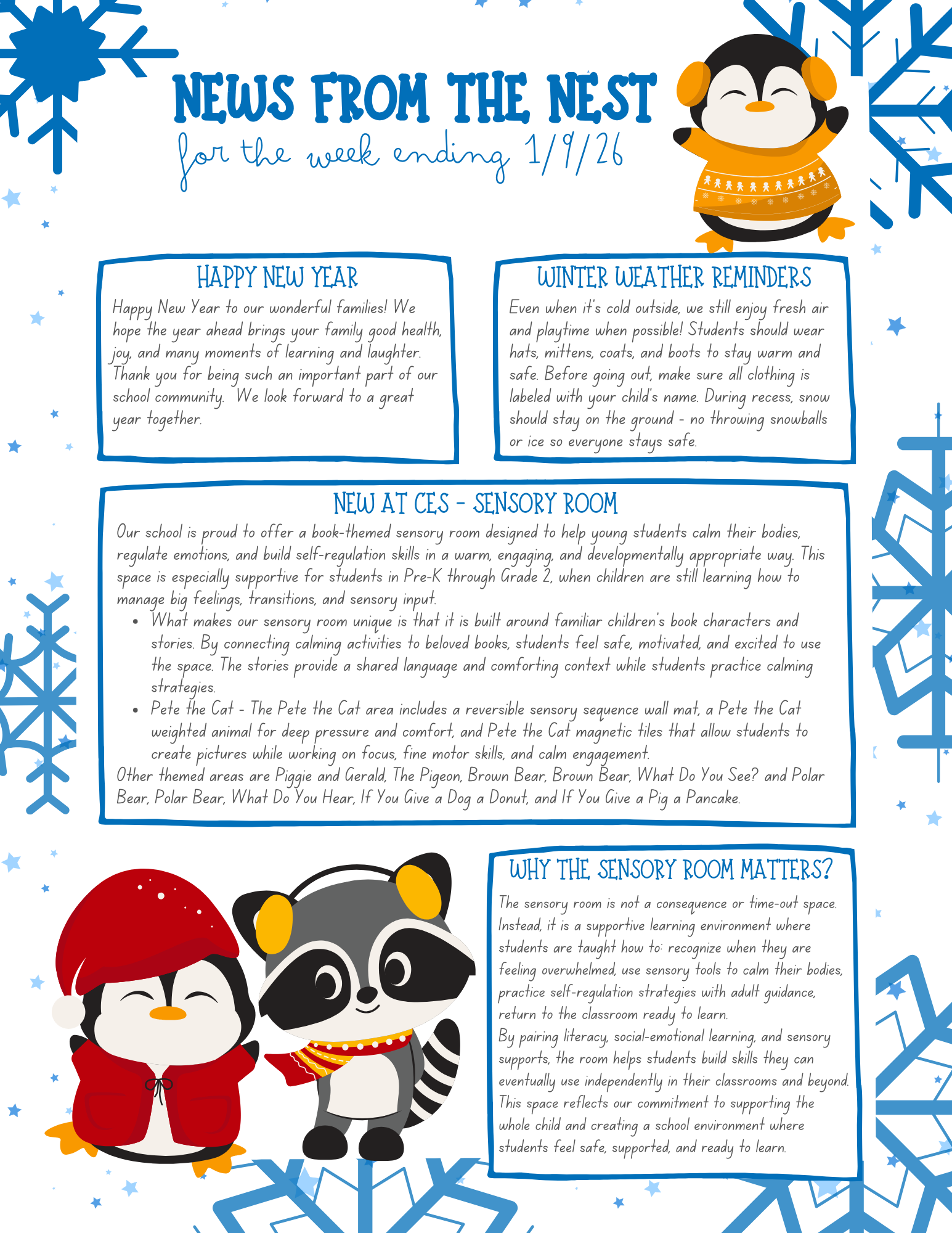 Dear Students and Families,As we head into the winter break, we want to wish you a restful, joyful, and safe holiday season. The forecast ultimately broke our way this morning, and despite a few sl...